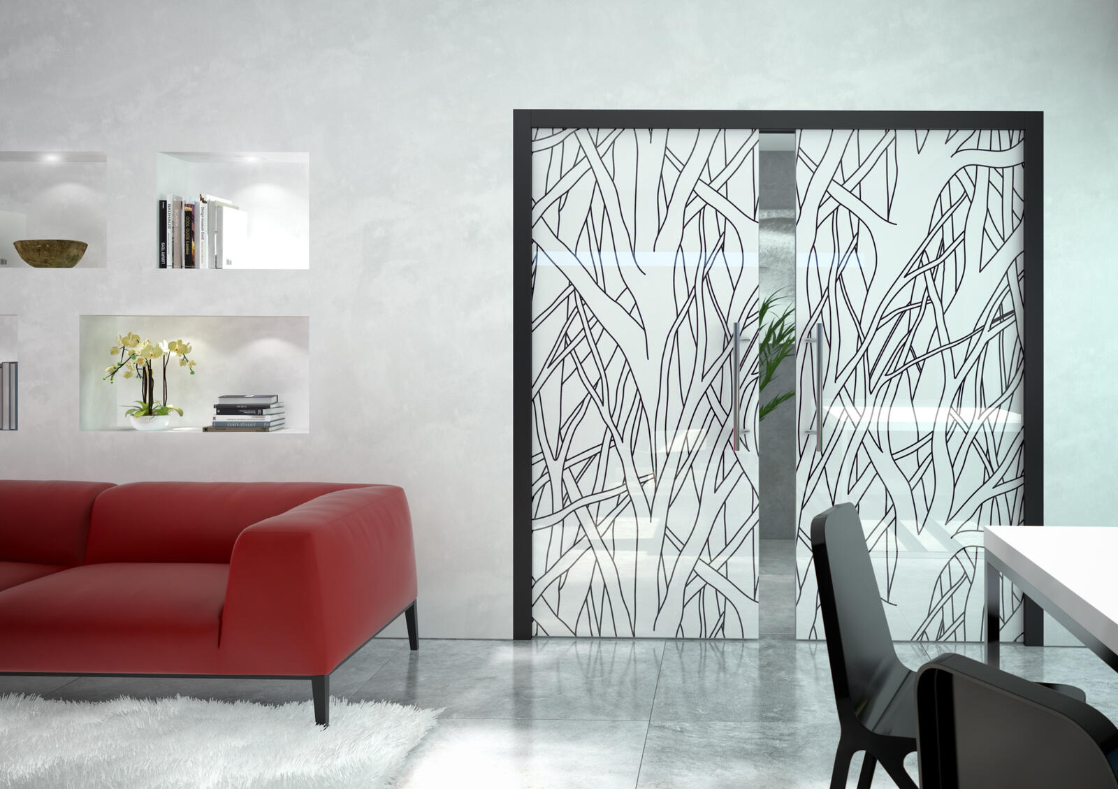 Строителна касета в изпълнение за двукрилни плъзгащи се врати, при които традиционната дървена каса е на едно ниво със стената, т.е. с линията на стената, а горното свързване между частите е един вид под тъп ъгъл. Движението на крилата може да бъде и синхронно, като двете крила могат да се затварят или отварят едновременно. Тази строителна касета позволява монтирането на облицовъчната каса на едно ниво със съседната преграда на вратата, като е предназначена за облицовъчна каса с дебелина 15 мм. Ако преградата е зидана, строителният отвор трябва да включва и трегер – строителната касета не издържа на натоварване. Дизайнът на касетите е свързан с широка гама от контракаси Latente за въртящи се врати.