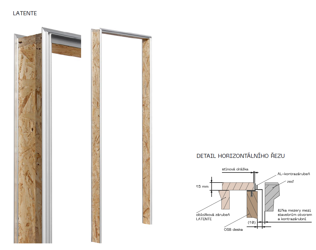 Ние сме производители на т.нар. контракаси. Това е каса, която позволява дървената облицовка да се вгради в нивото на стената. Дървената облицовка се доставя от производителя на вратата. Проходът около вратата е ограничен от касата, която е изравнена със стената. Контракасата е произведена от OSB плочи с дебелина 22 мм и суров алуминиев профил. Касата Latente се използва за отваряне на вратата в посока към вас и обратно.