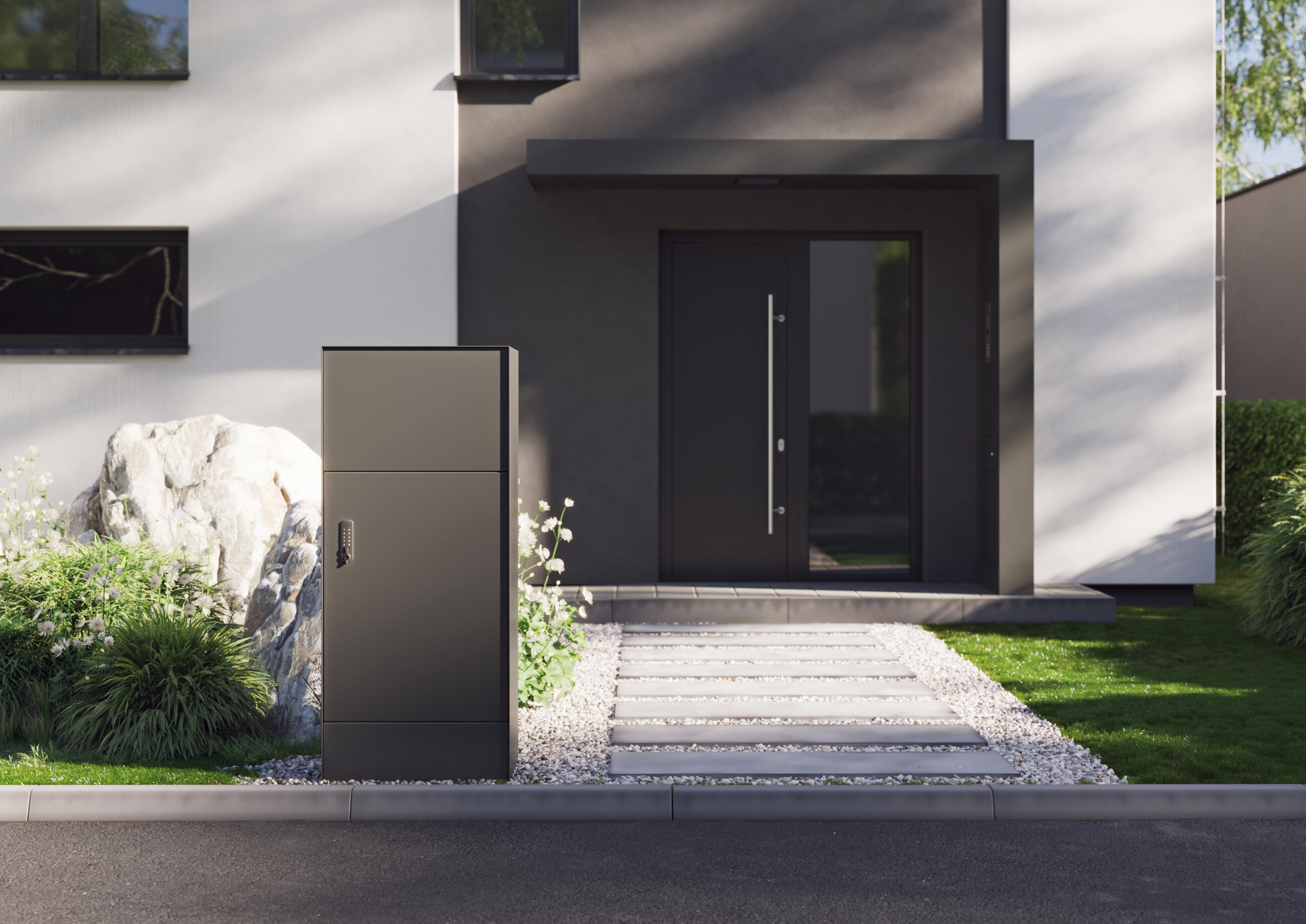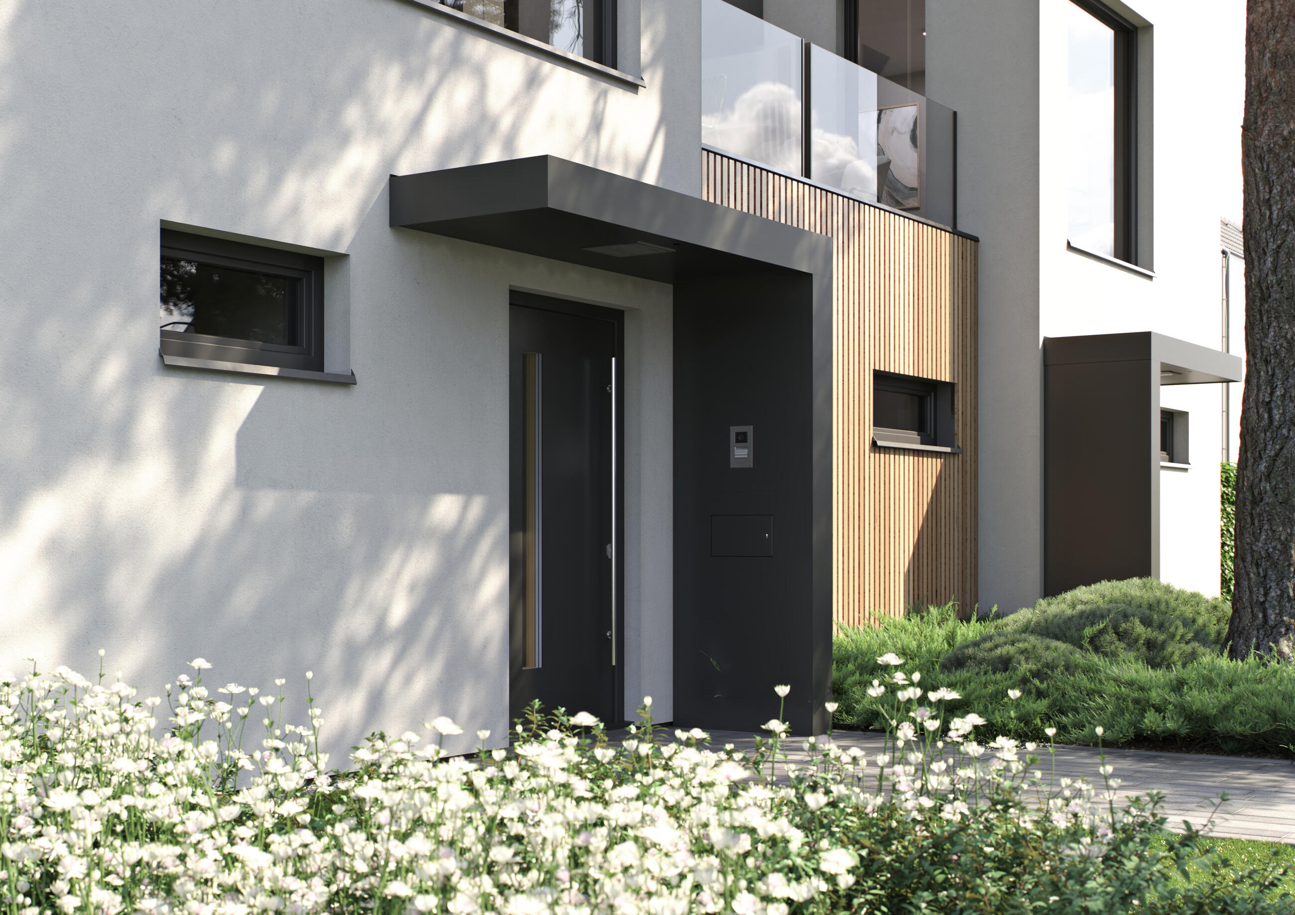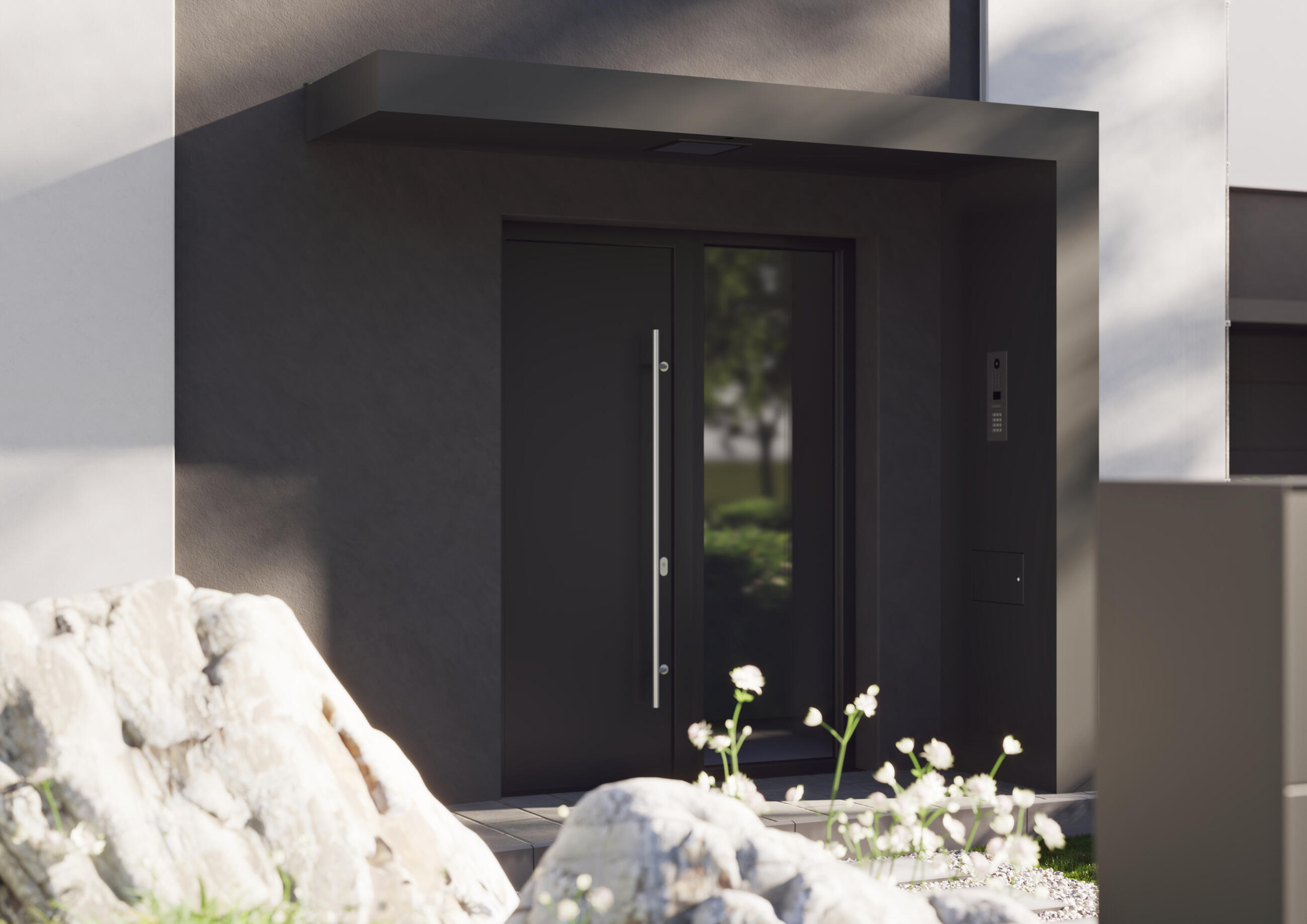 Модул, съдържащ различни компоненти - номер на сграда, пощенска кутия, навес, светлинен сензор и подготовка за звънец. Така се създава място, защитено от вятър, дъжд и слънце. Модулът може да има различна ширина, дълбочина, ориентация и в зависимост от броя на семействата в къщата може да се избере една или две системи. За този вариант можем да използваме и елемента Label.