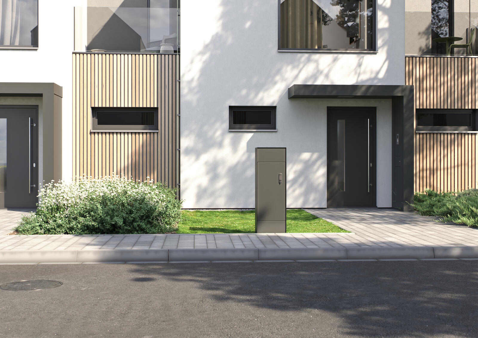 Модул, съдържащ различни компоненти - номер на сграда, пощенска кутия, навес, светлинен сензор и подготовка за звънец. Така се създава място, защитено от вятър, дъжд и слънце. Модулът може да има различна ширина, дълбочина, ориентация и в зависимост от броя на семействата в къщата може да се избере една или две системи. За този вариант можем да използваме и елемента Label.