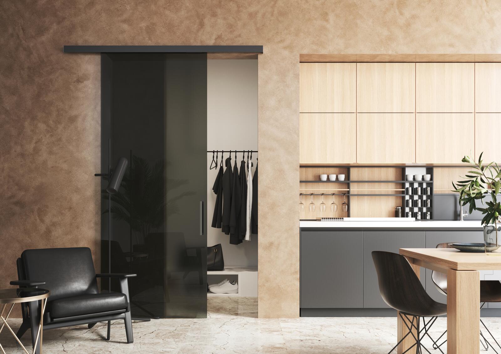 - Като единично плъзгане е подходящо за монтаж върху запазената оригинална облицовка след въртяща се врата.