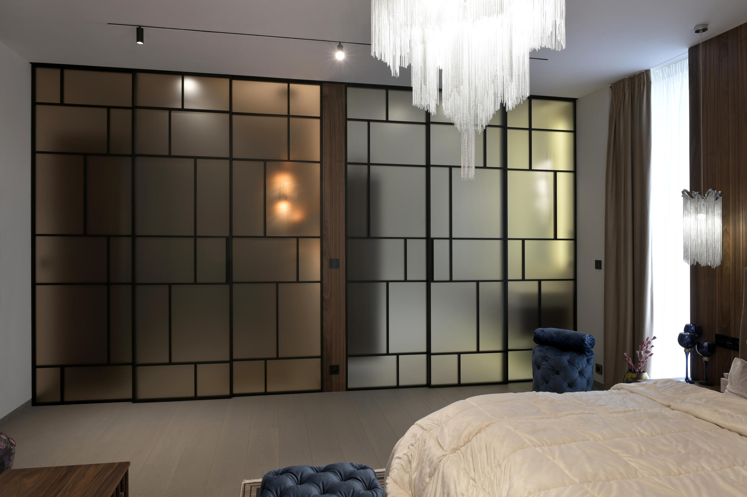 „Целта беше да се отдели пространството на главната спалня от банята и гардероба. Беше необходимо да се измисли лека и прозрачна стена с плъзгаща се врата, така че всичко да изглежда като едно цяло. В сътрудничество с инвеститора постепенно се появиха няколко варианта на решение. Резултатът беше стенна конструкция от черен лакиран алуминий, изпълнен с остъклени плоскости от непрозрачно стъкло, благодарение на които помещенията запазиха своята лекота. Лекотата на конструкцията не натоварваше цялото пространство на спалнята и съседните стаи. Реализацията изискваше опитен и надежден доставчик. Фирма JAP предлагаше широка гама от плъзгащи системи и стъклени стени и имаше смелостта и опита да реализира този проект по качествен начин и точно според замислената концепция. За което трябва да я похваля, защото изпълнението е прецизно и стопроцентово отговаря както на моите представи, така и най-вече на тези на инвеститора.“