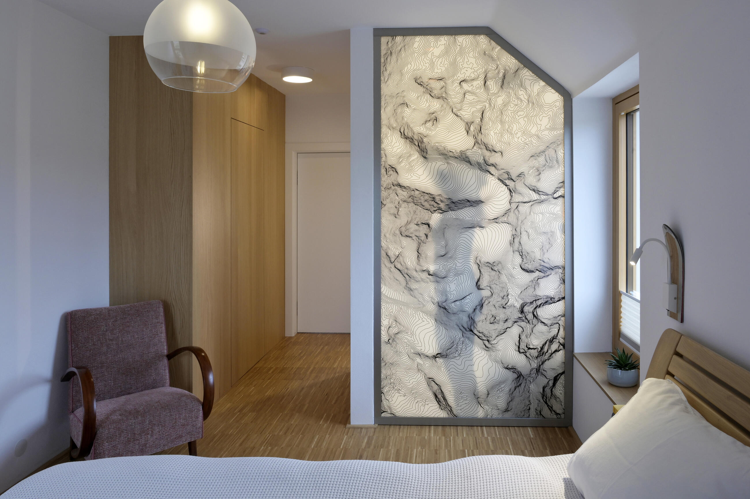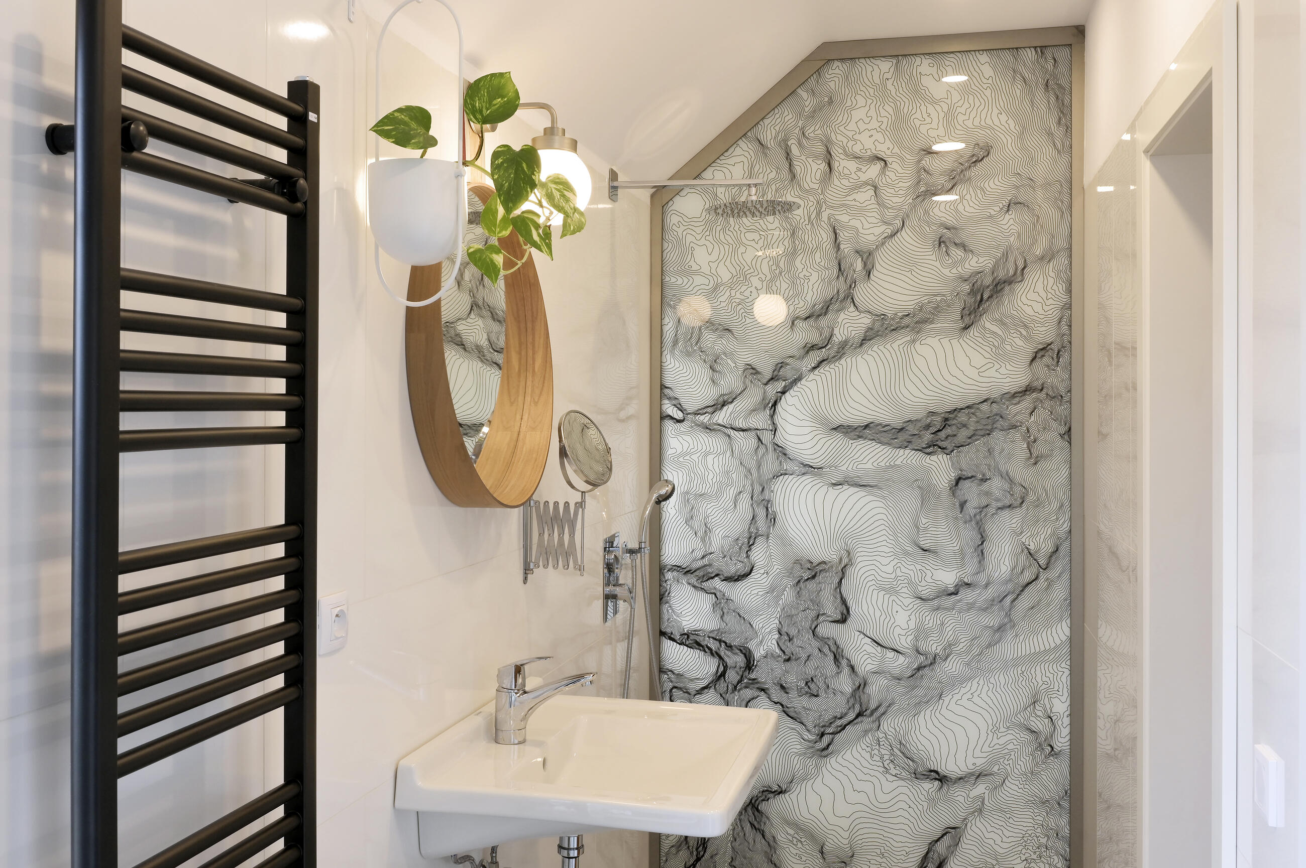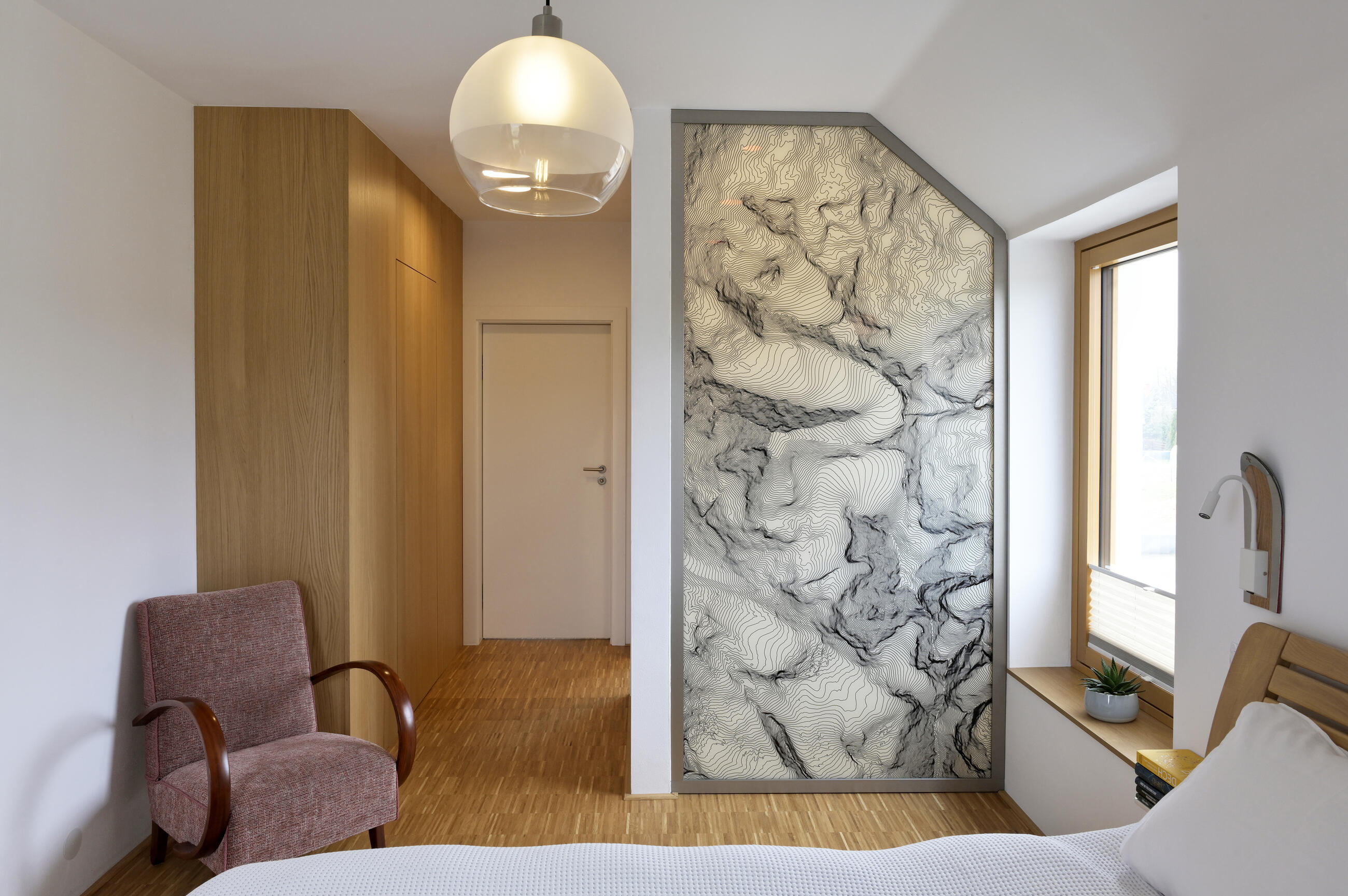 Окончателният проект, включително монтажа, беше изпълнен на високо ниво. Стъклената стена с контури на планинска верига, която е важна за нас, е перлата на интериора, към която поглеждаме всеки път, когато се събуждаме, заспиваме и вземаме душ.“