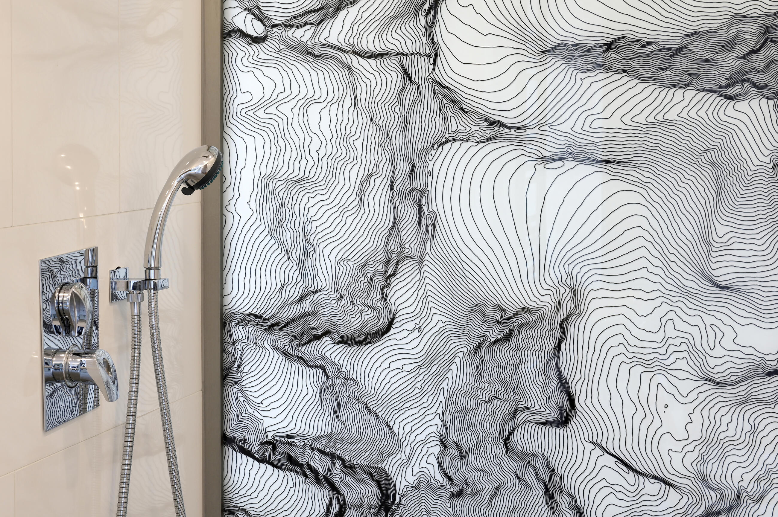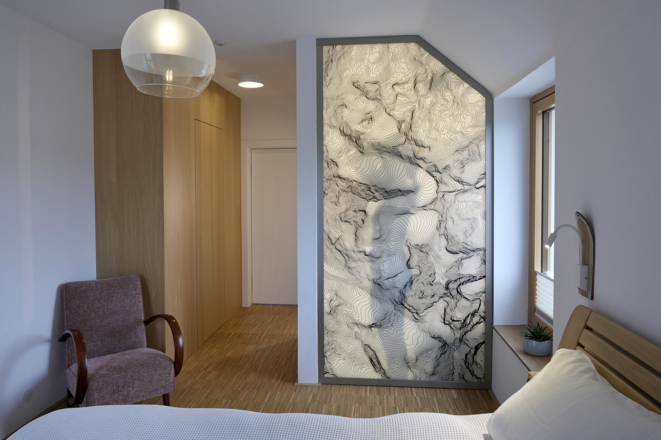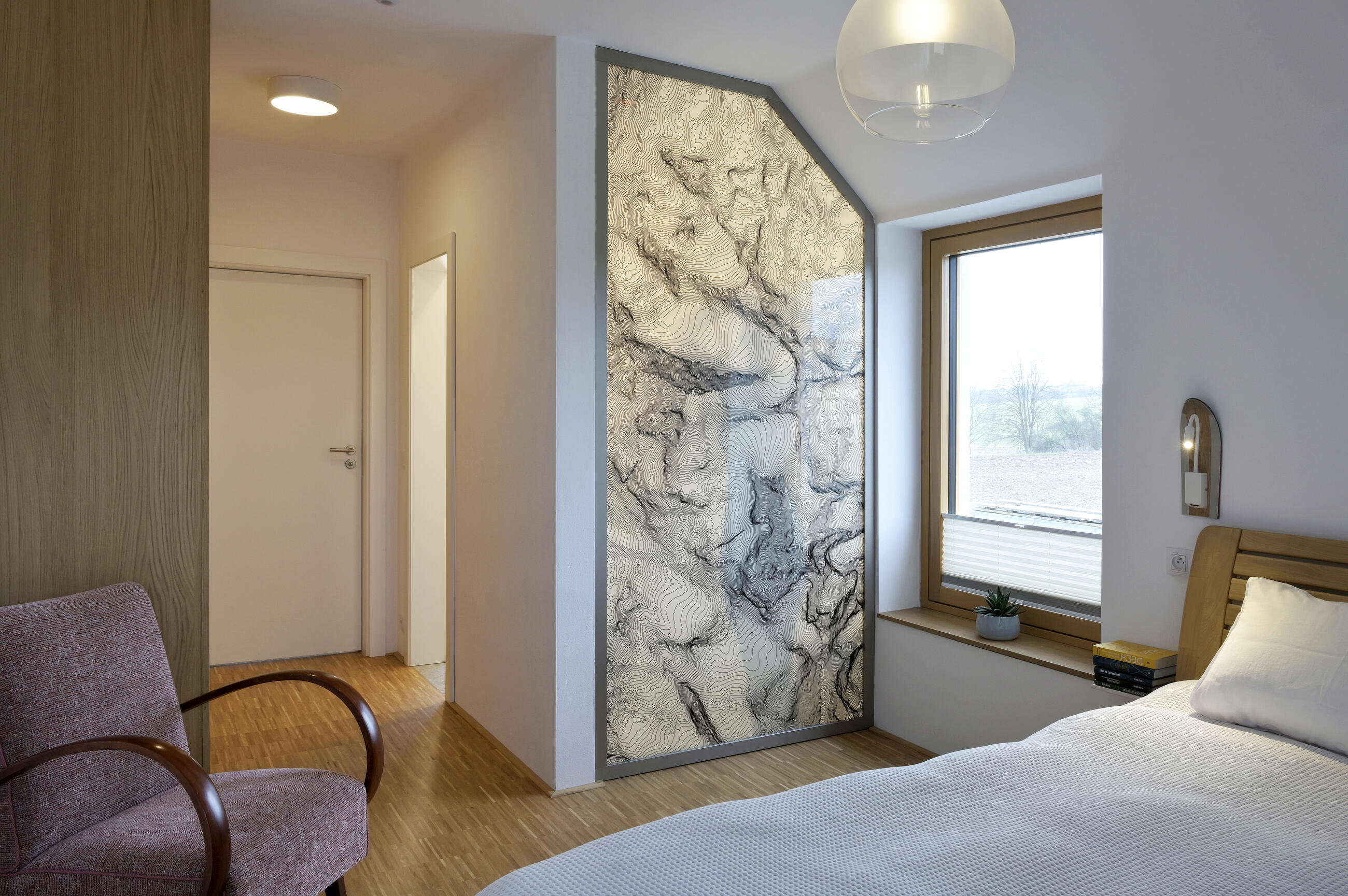 Окончателният проект, включително монтажа, беше изпълнен на високо ниво. Стъклената стена с контури на планинска верига, която е важна за нас, е перлата на интериора, към която поглеждаме всеки път, когато се събуждаме, заспиваме и вземаме душ.“